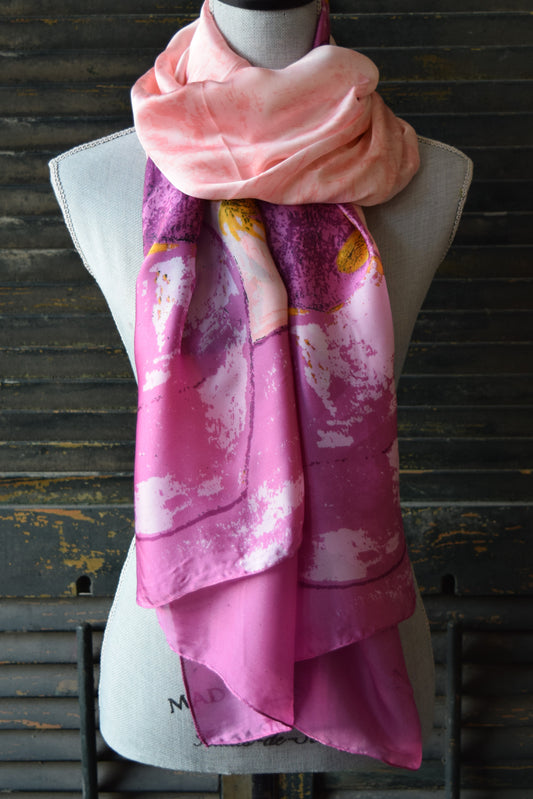Pink Floral Silk Scarf