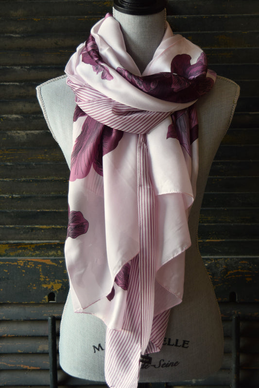 Purple Foral Stripe silk Scarf