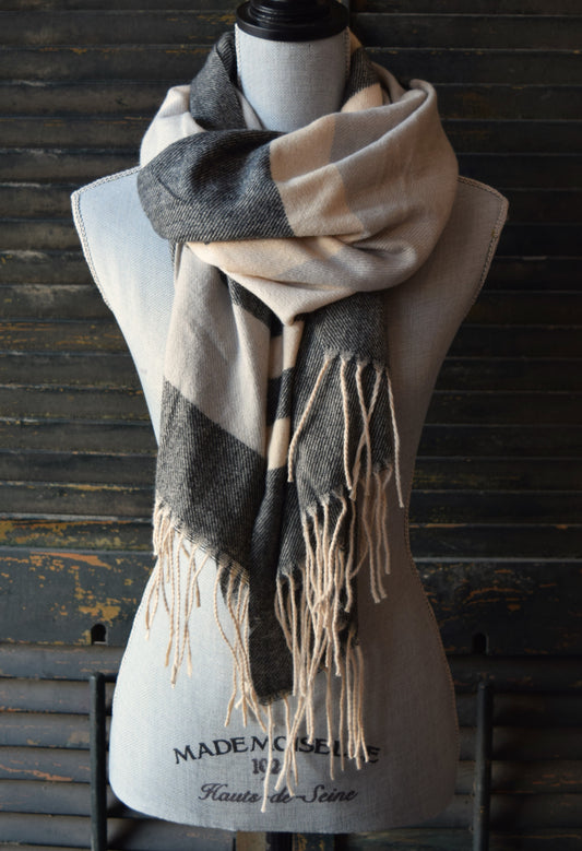 Black Cream Plaid Scarf