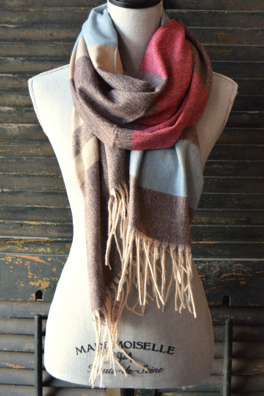 Red Brown Blue Plaid Scarf