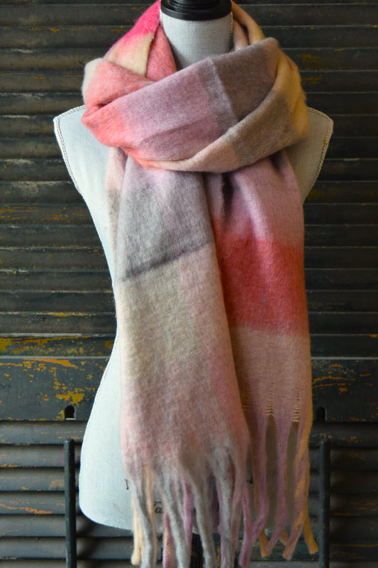Pink Grey Plaid Scarf