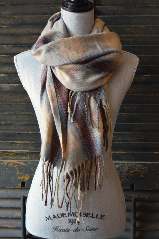 Brown Pink Plaid Scarf