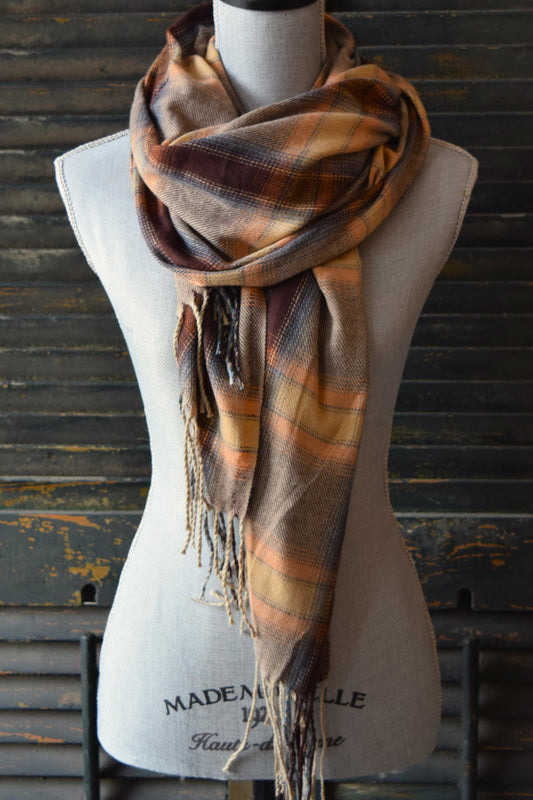 Brown Pink Plaid Scarf